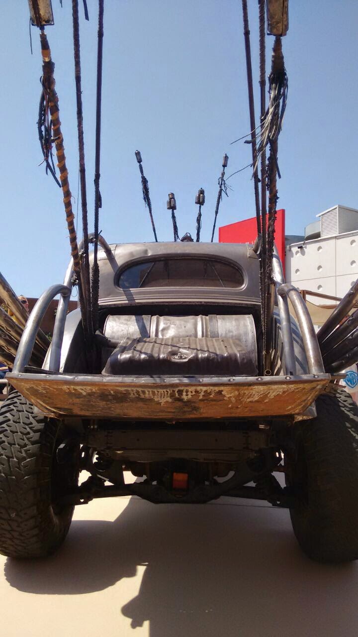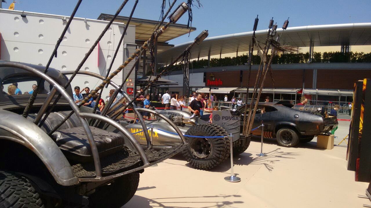 El sábado nueve de Mayo tuvimos el placer de visitar una pequeña exposición de coches de la película "Mad Max: Furia en la carretera", a los que pudimos subir gracias a los responsables de Warner Bros España.